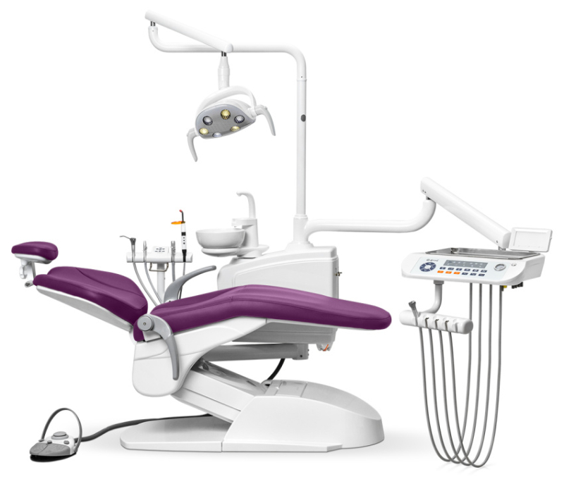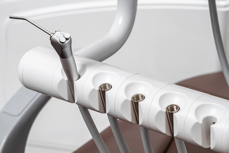 - Модуль ассистента на 4 инструмента с пистолетом вода-воздух, пылесосом, слюноотсосом и полимеризационной лампой.